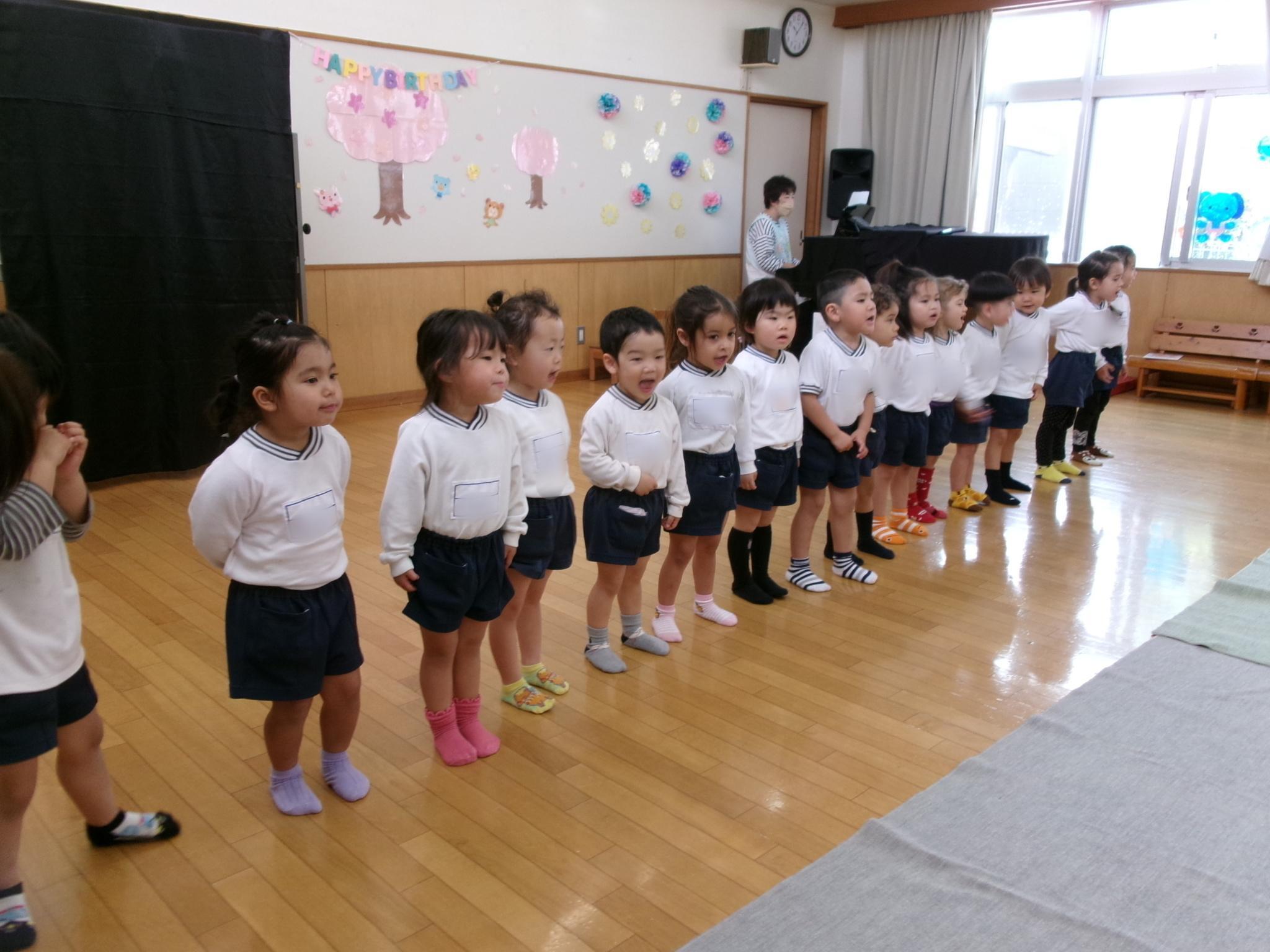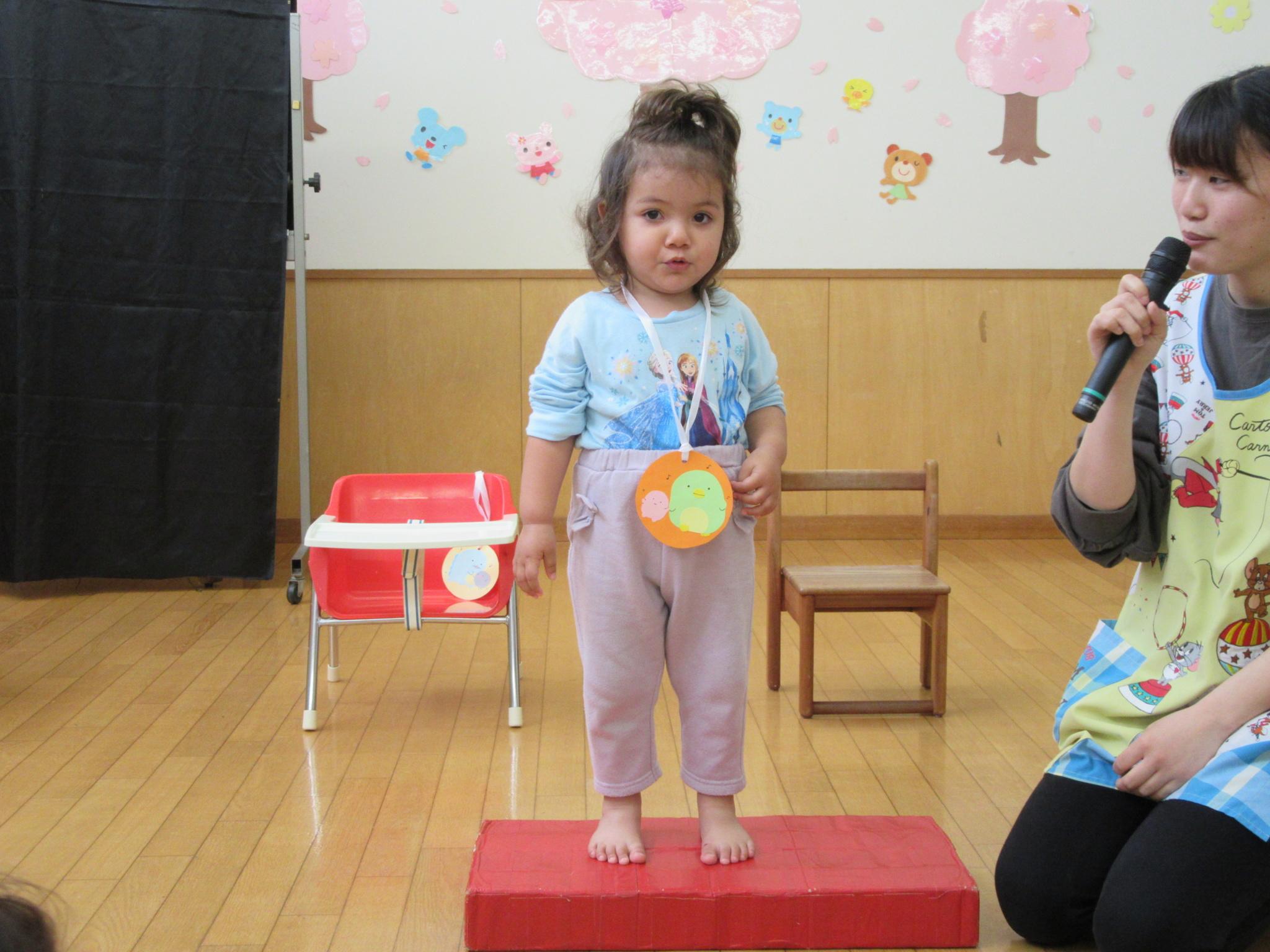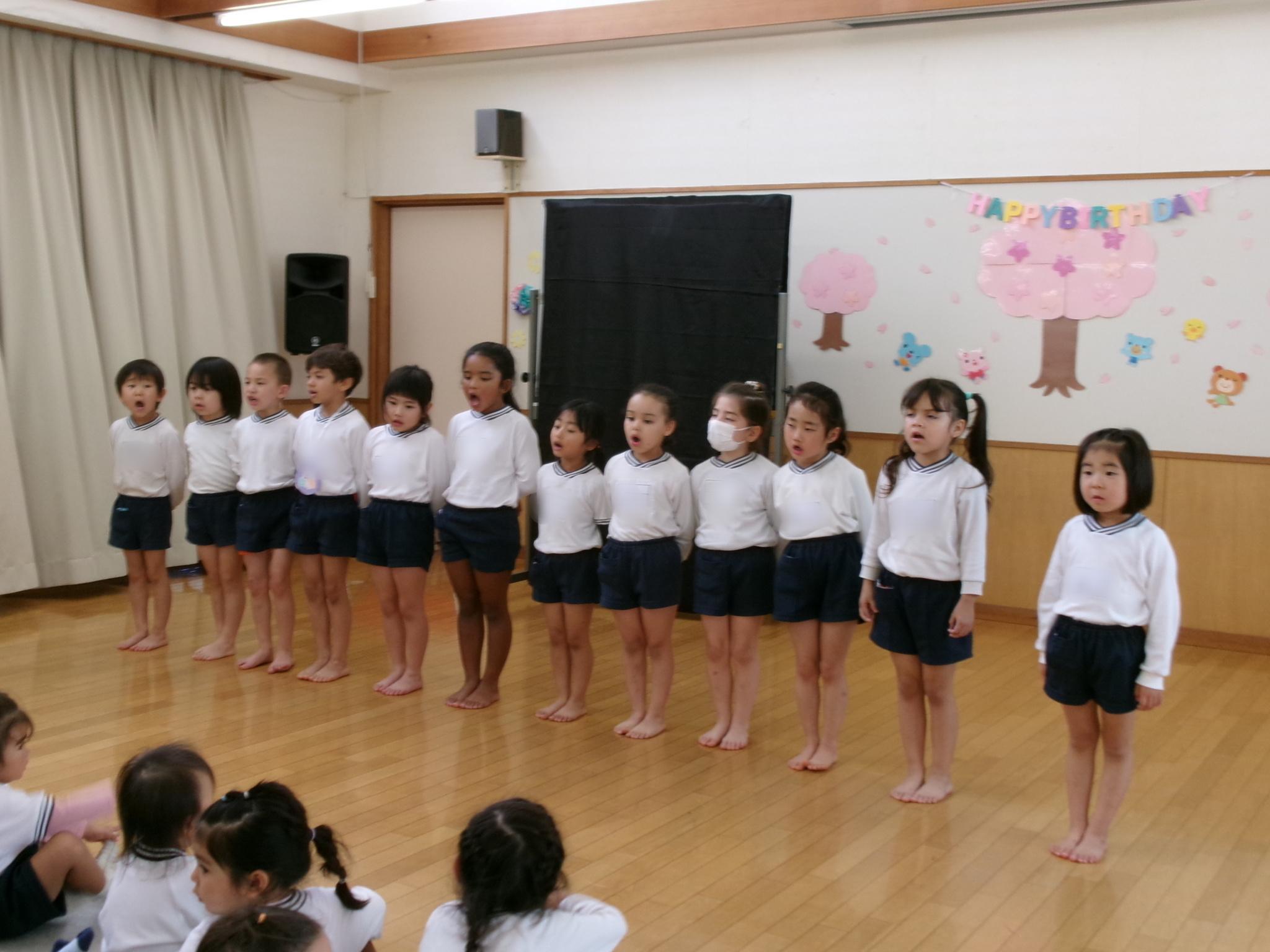 4月は4名のお友だちをお祝いしました。各クラスからのうたのプレゼントがありました。