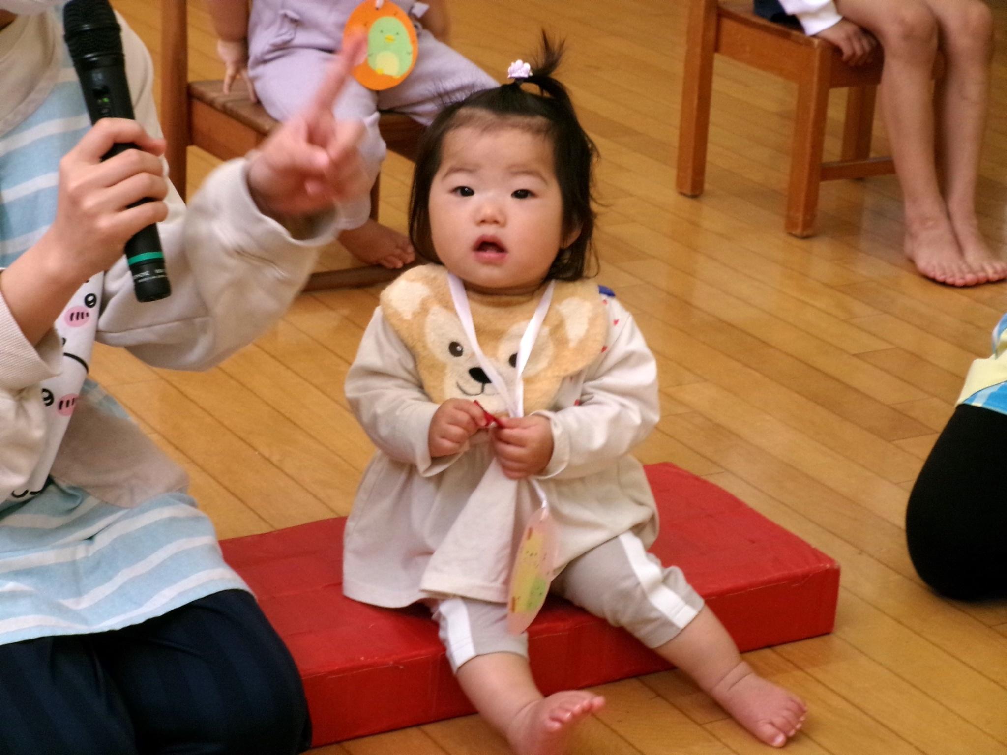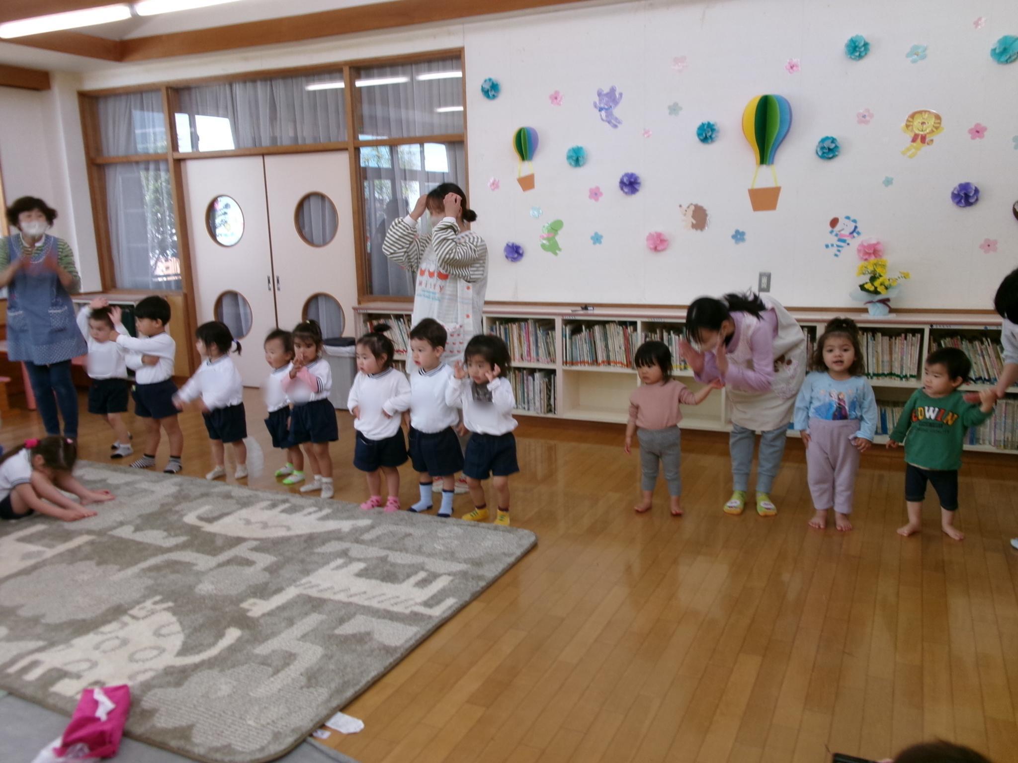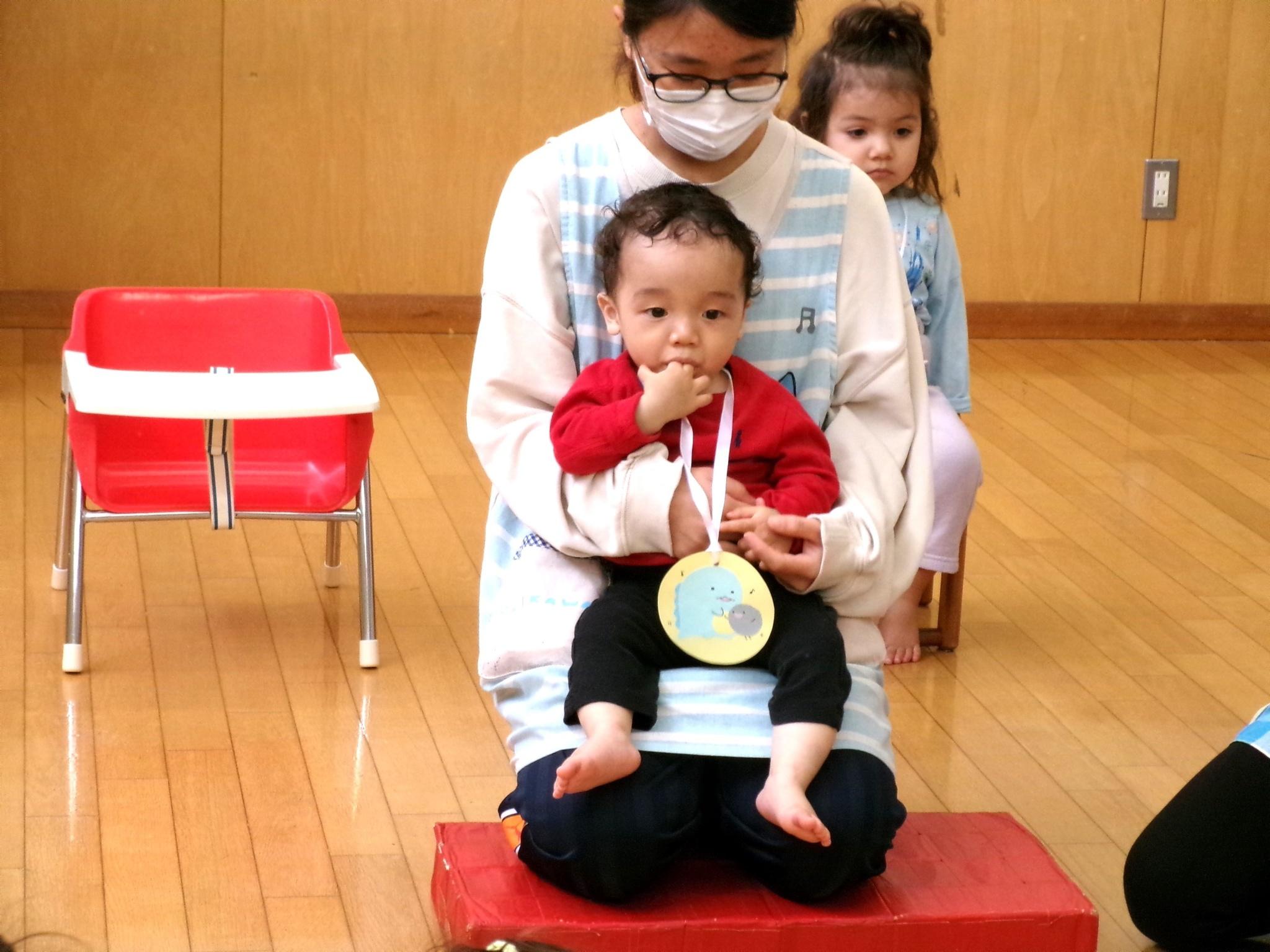 4月は4名のお友だちをお祝いしました。各クラスからのうたのプレゼントがありました。