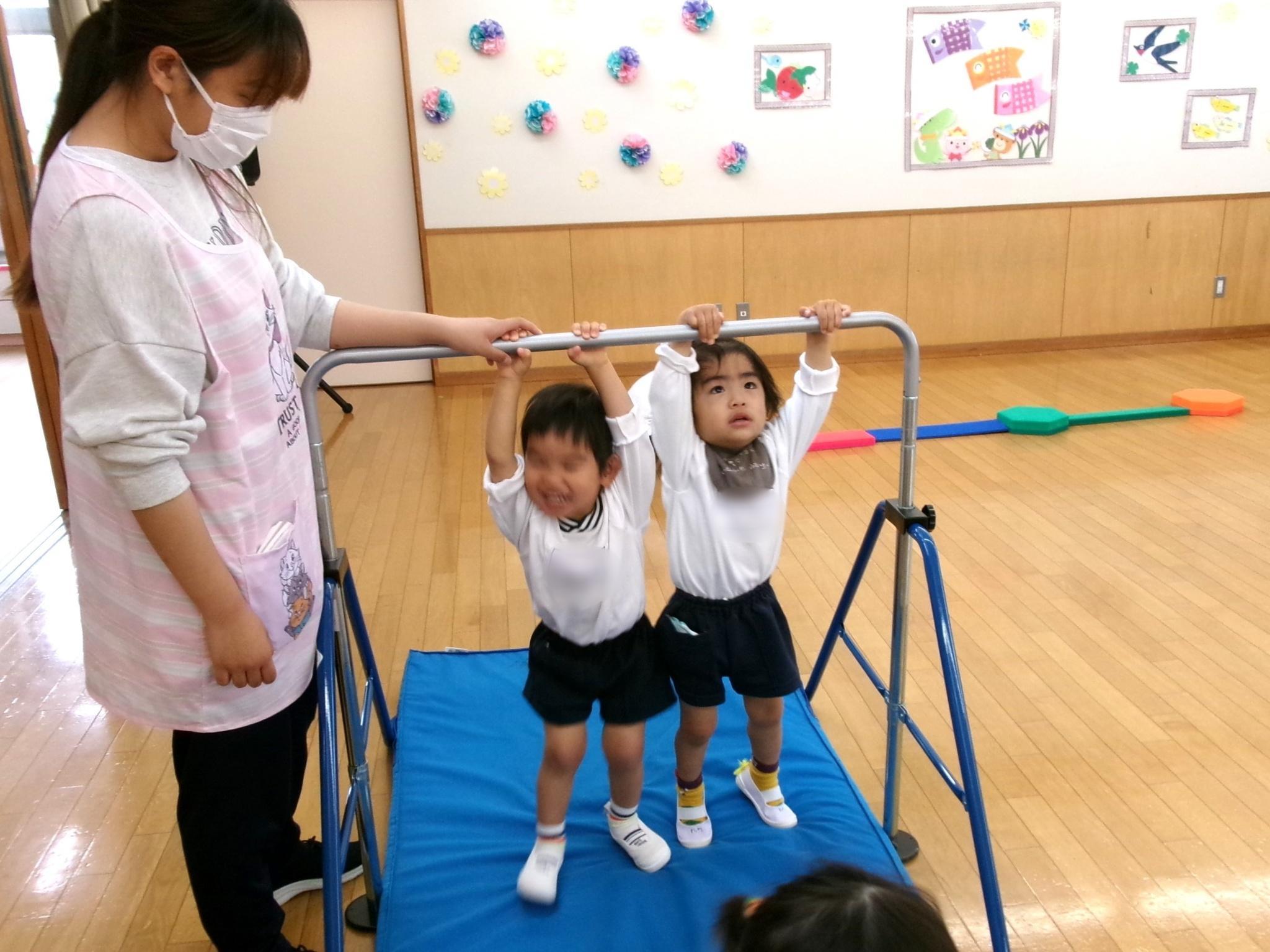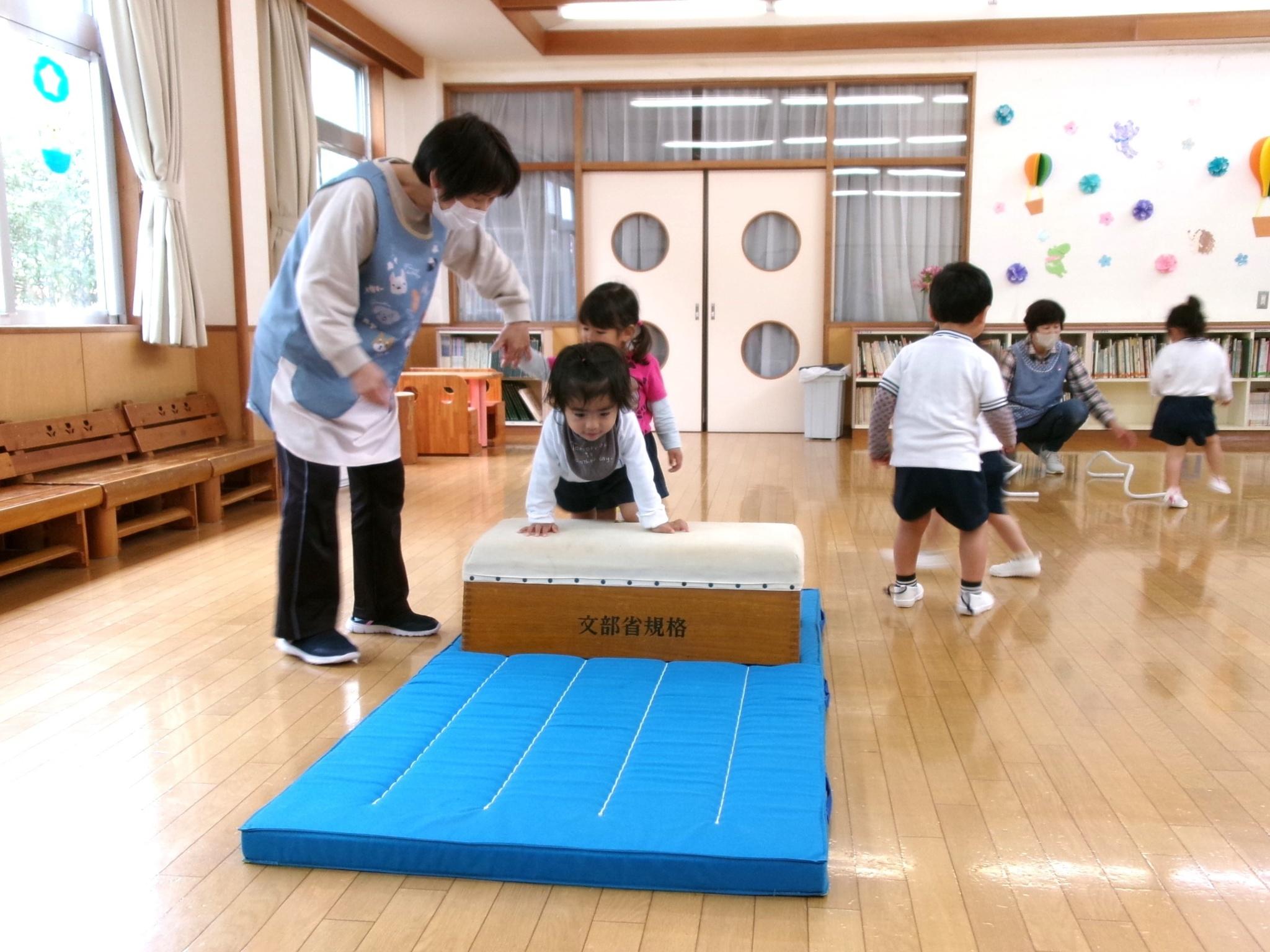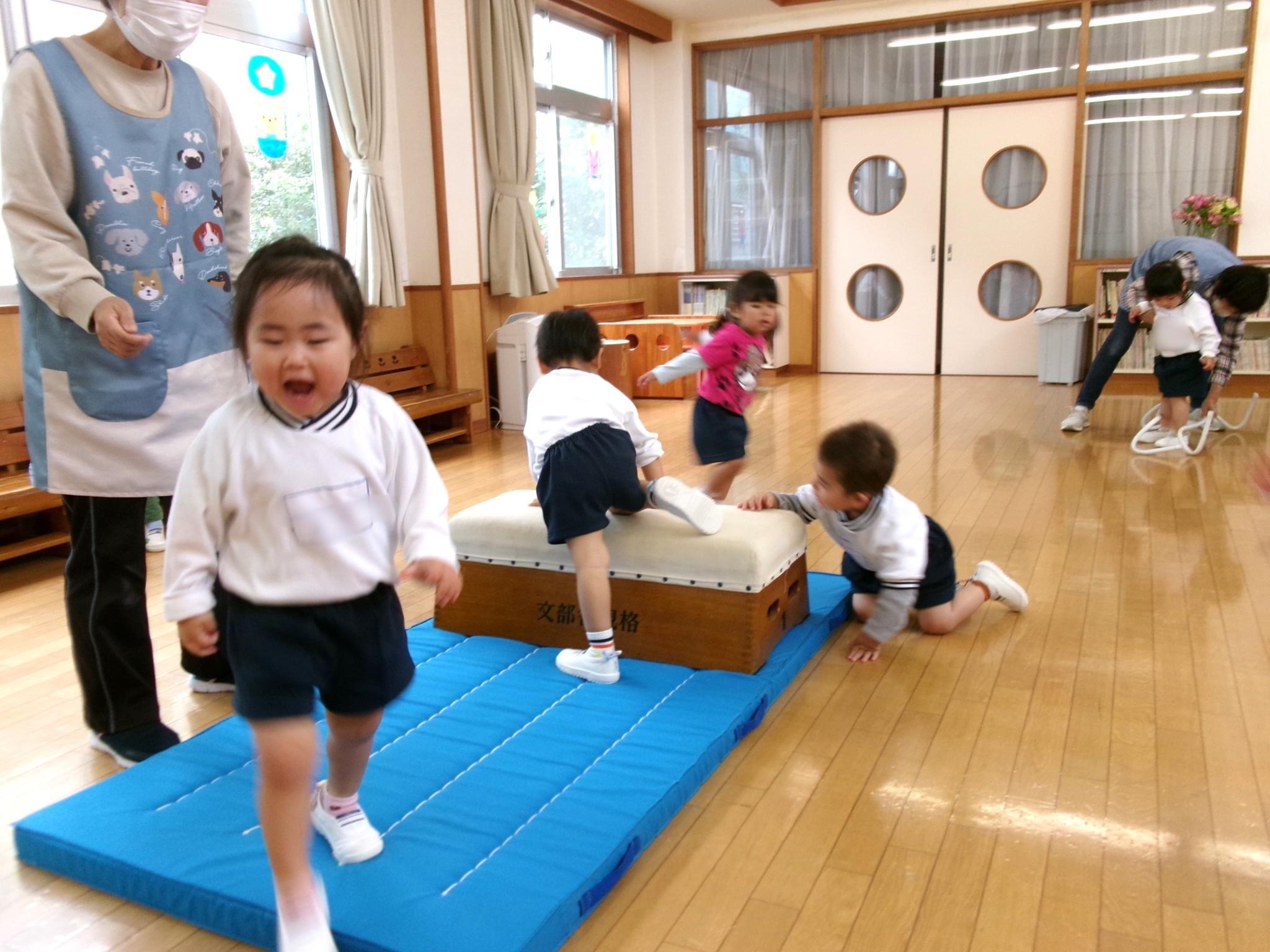 鉄棒、とび箱・・・色々な運動遊具を使ってサーキット遊びをしました。