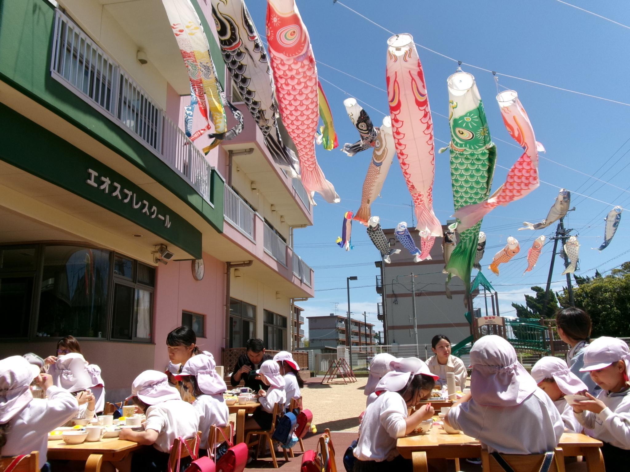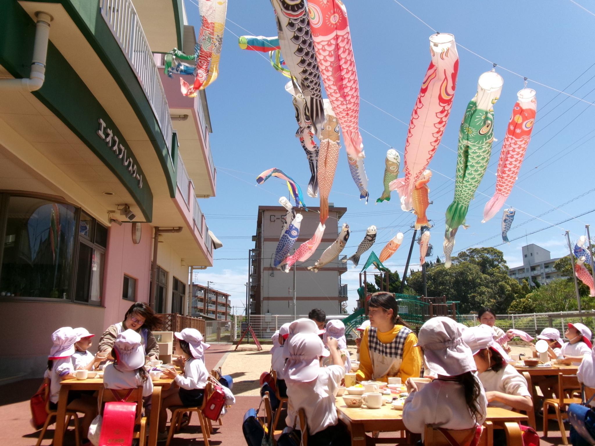 ひまわり、ゆり組はこいのぼりを見ながらの青空ランチも楽しみました!