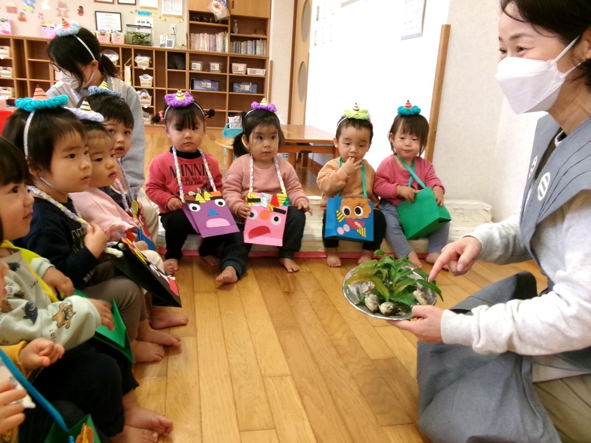 2月2日は節分でした。園では3日に節分会を行い、柊鰯の意味など、節分についての話を聞きました🌟