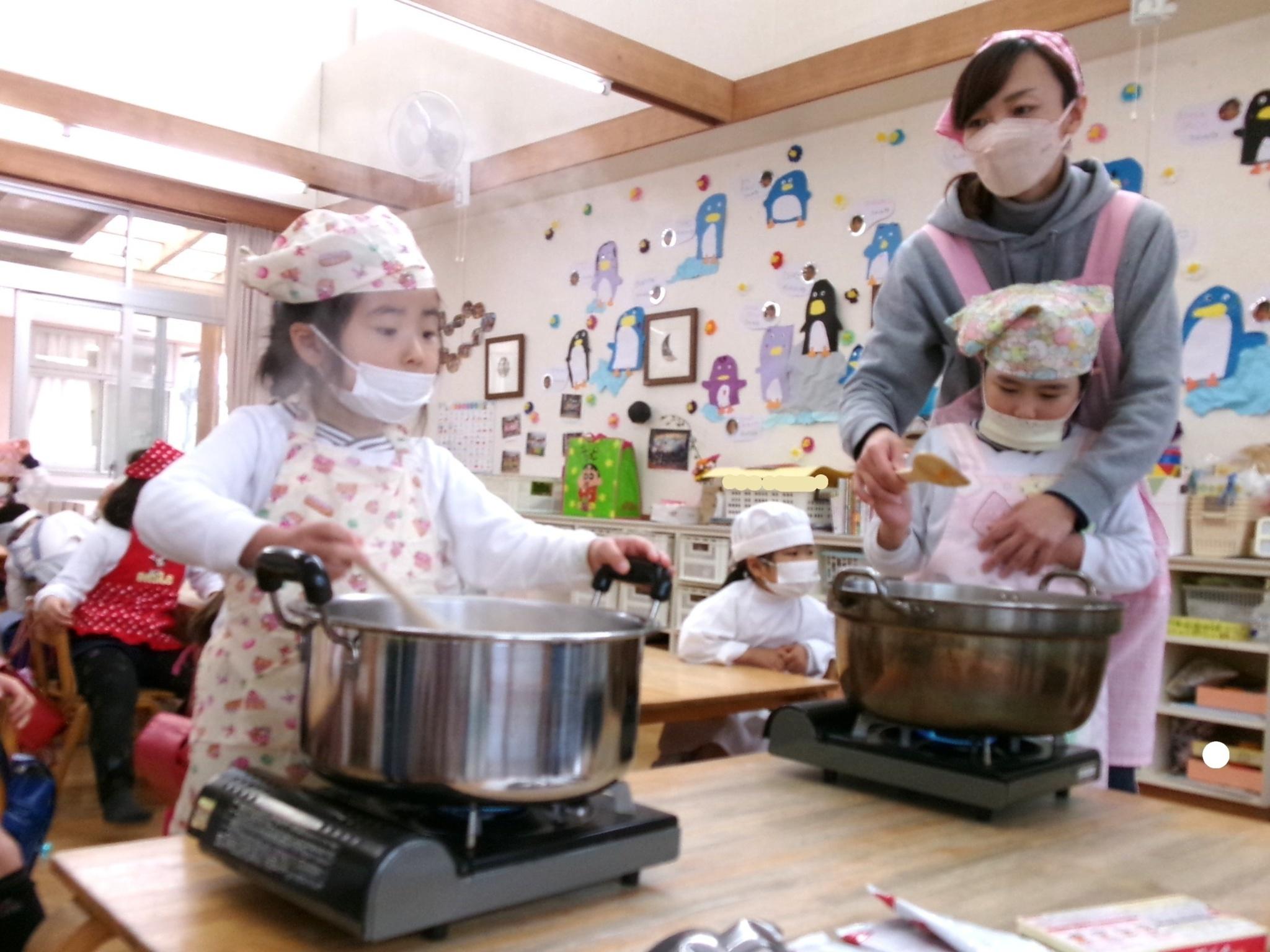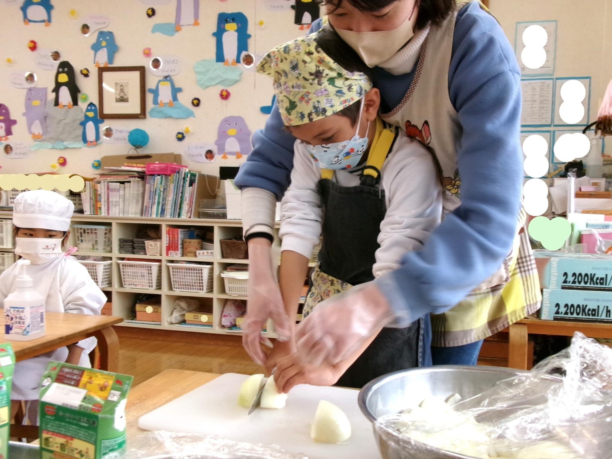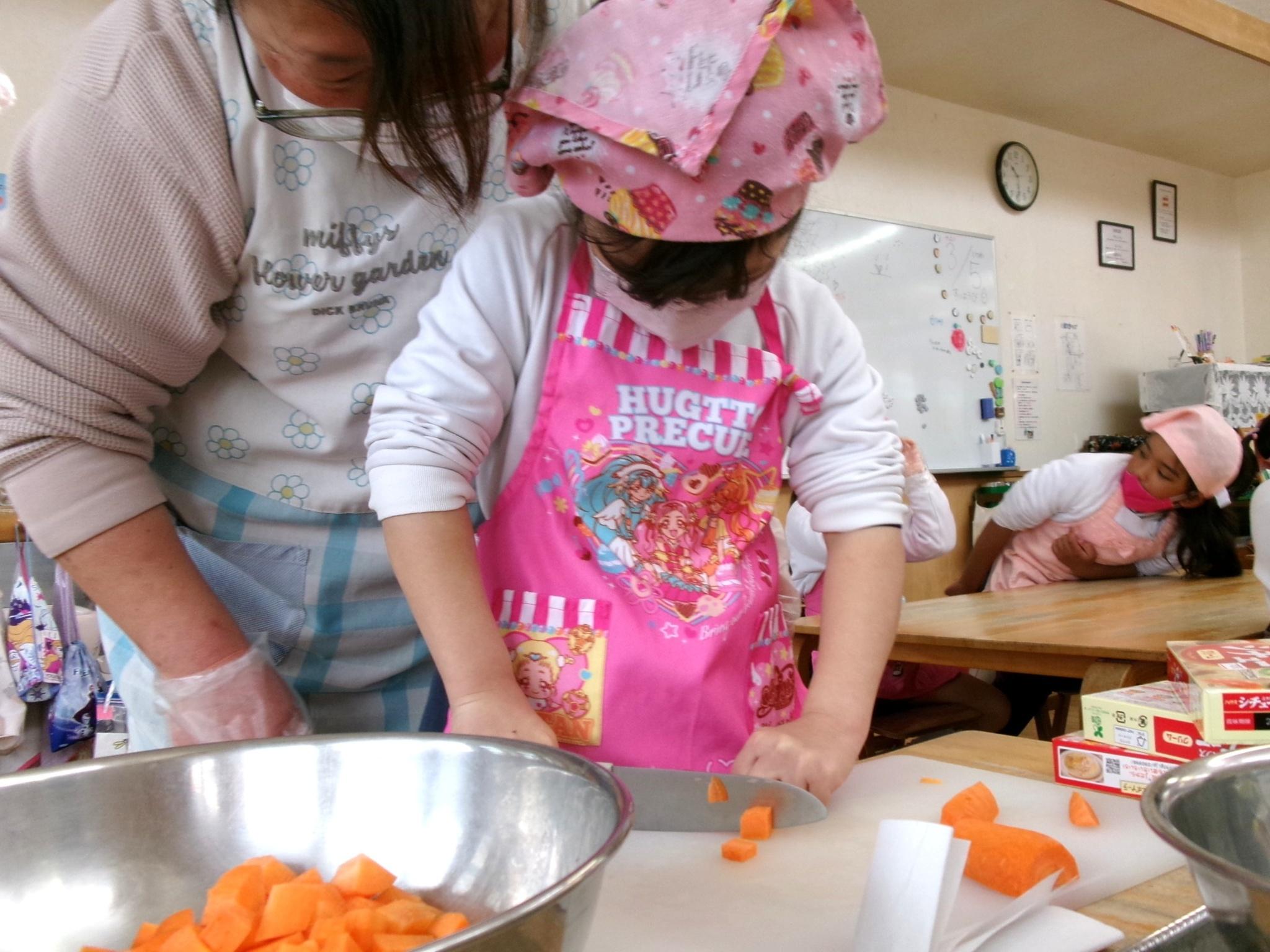 プランターで育てたカブを使って、ひまわりさんとゆりさんがシチューを作りました。