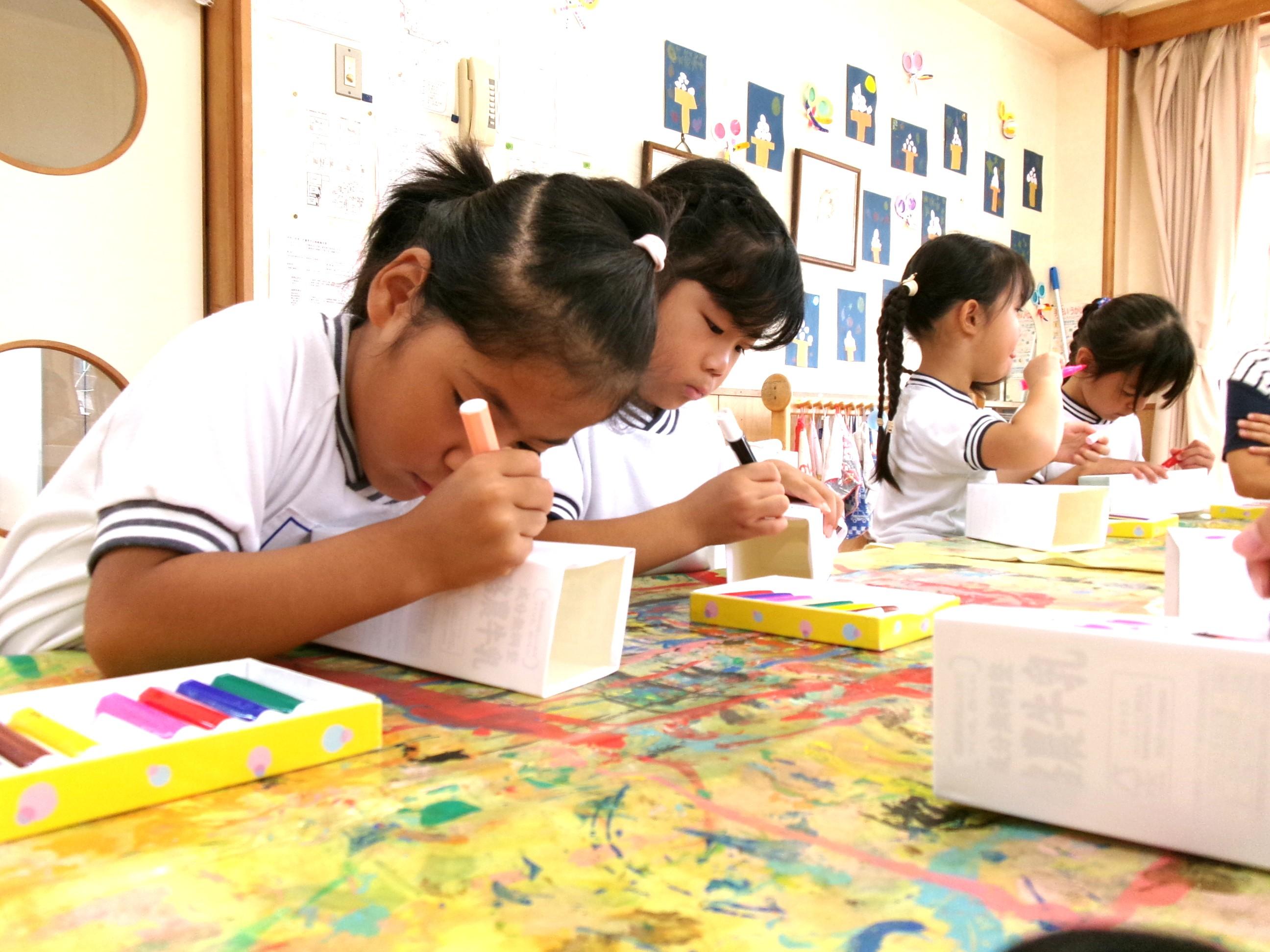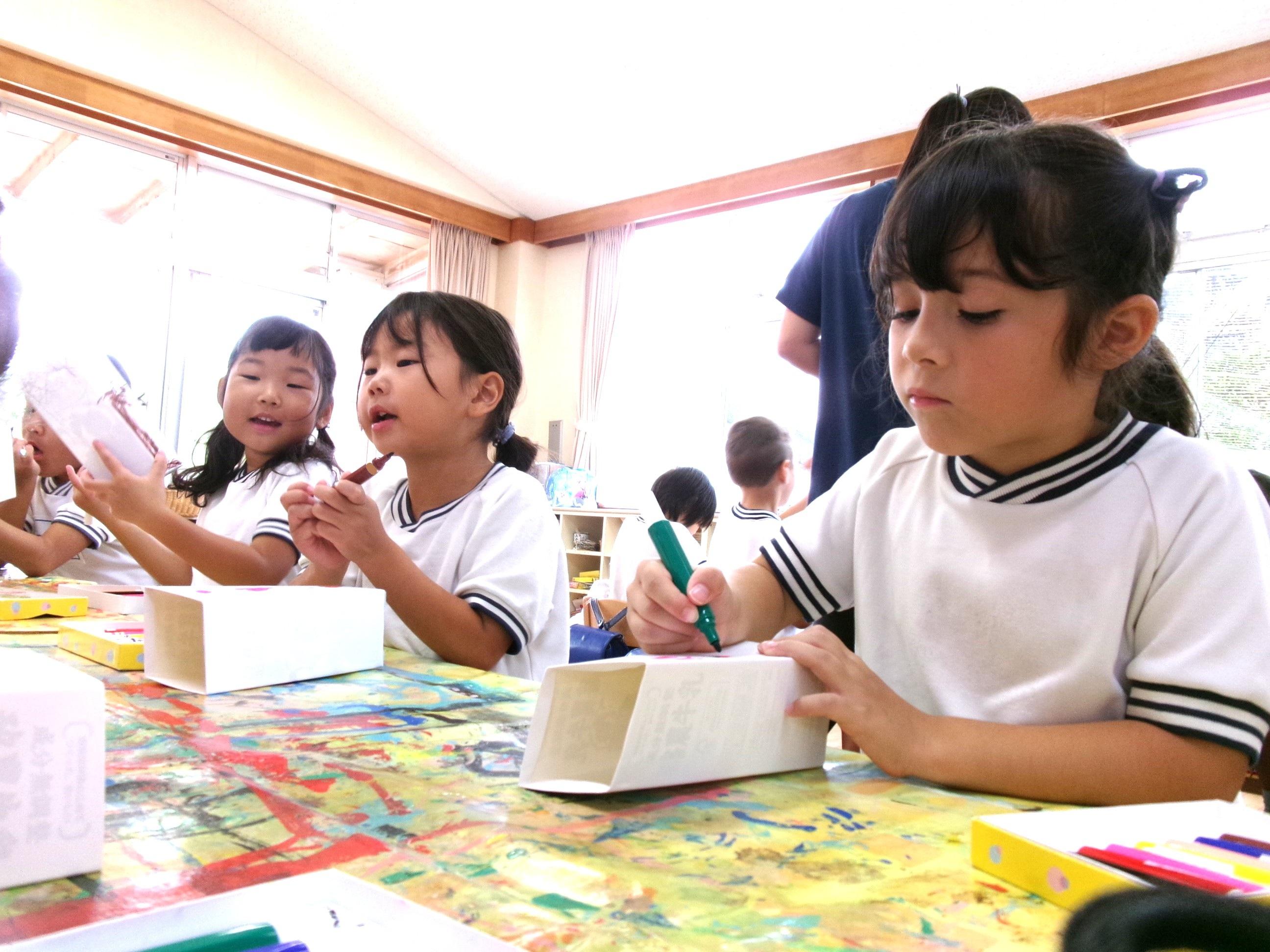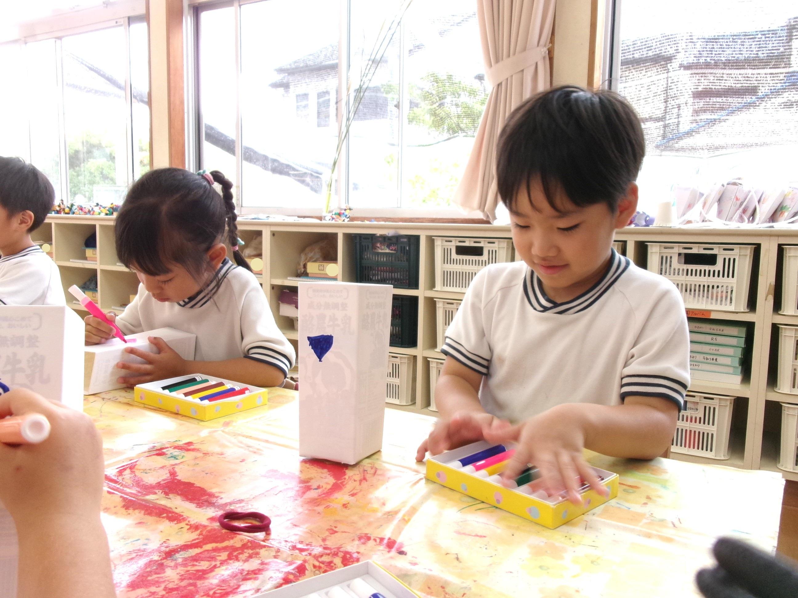 10月3日(金)に環境学習指導員の『やすおじさん』が来てくれ、ひまわり組がネイチャークラフトを楽しみました。やすおじさんが木の車やそれにつける木で作った飾りを用意してきてくれました。子どもたちがそれぞれ、書きたいもの、飾りたいものを自分で選びじっくりと時間をかけて完成させた木の車はとっても素敵でした✨お友だち同士で見せ合いっこをして、「これ良いね!」など、お互いに声を掛けていました。完成した車は遊戯室でみんなで走らせてとても楽しい時間になりました😊