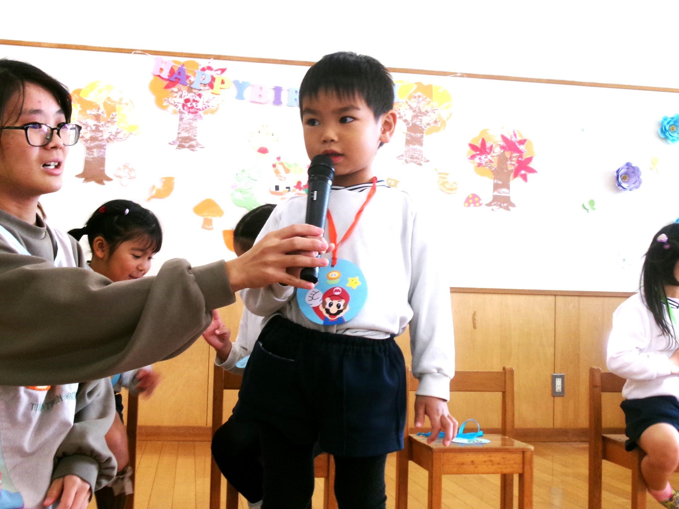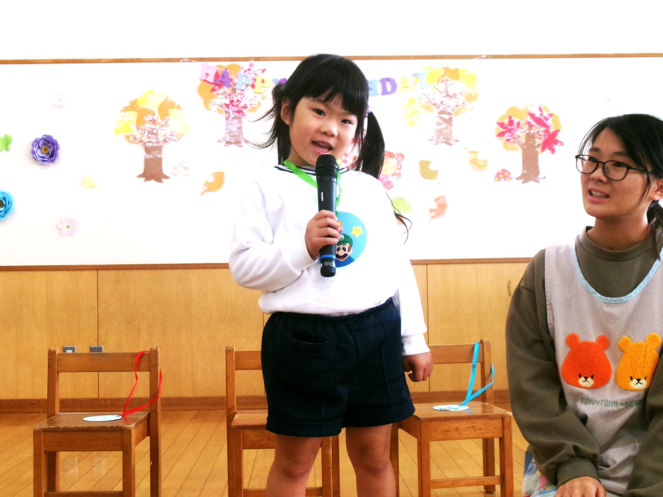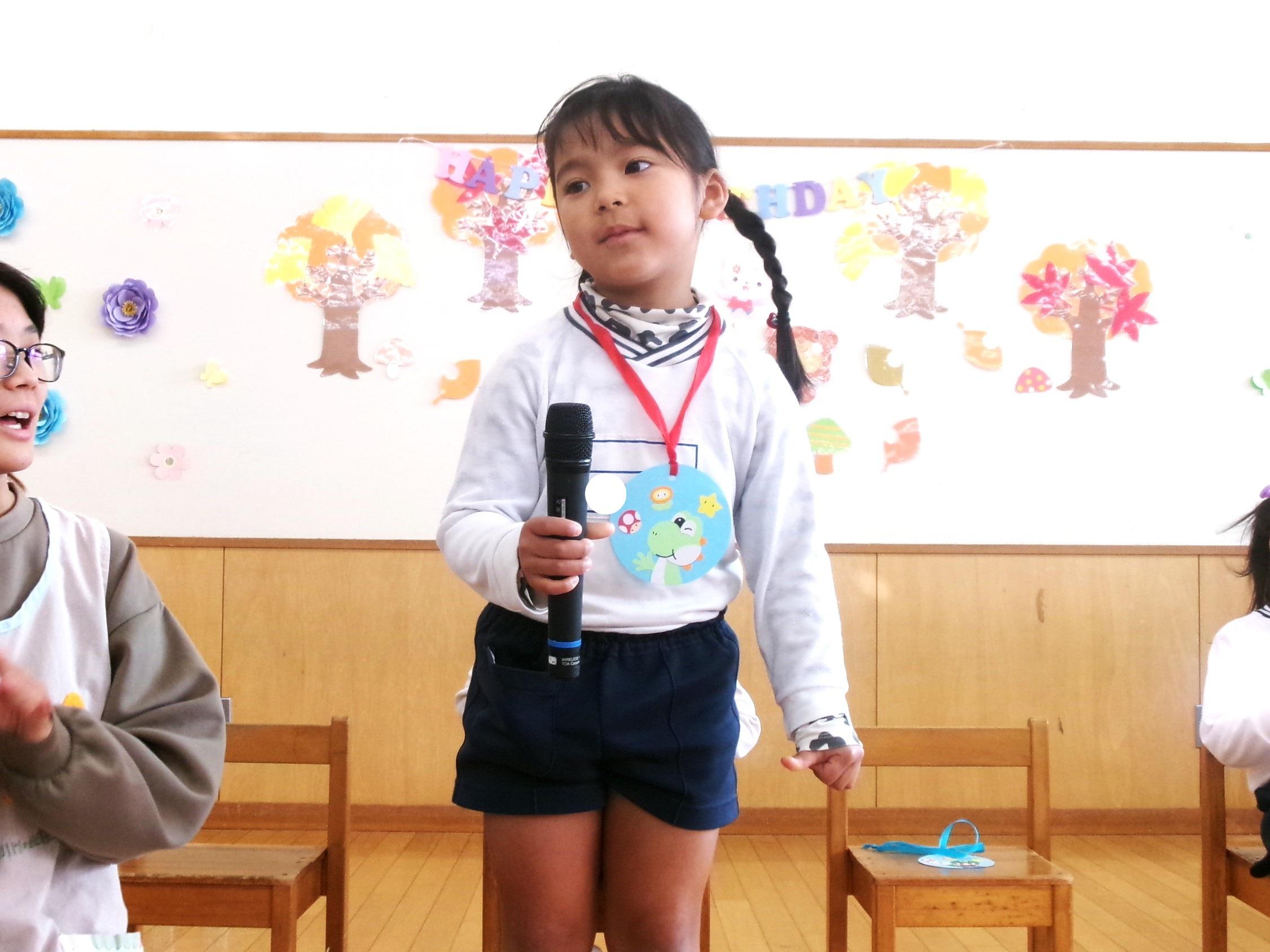 11月生まれのお友だちは9名でした。好きな食べ物や遠足で行った動物園での動物のお話を聞かせてくれました。各クラスからの歌のプレゼントもありました。11月生まれのお友だちお誕生日おめでとう✨