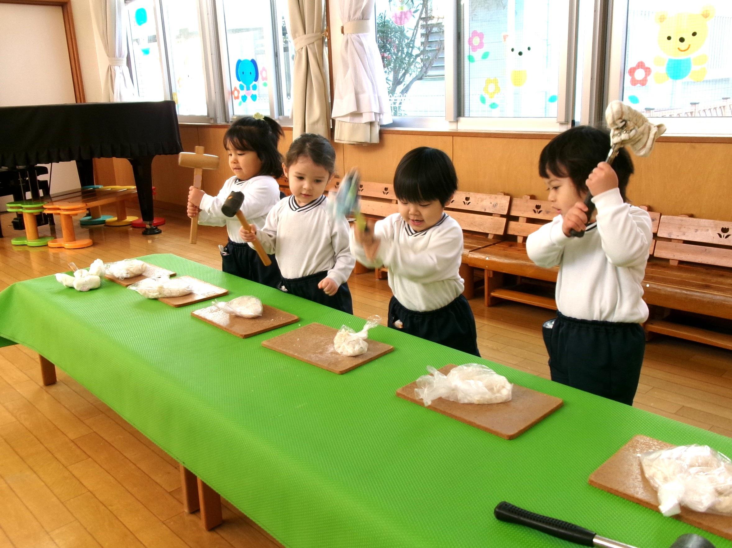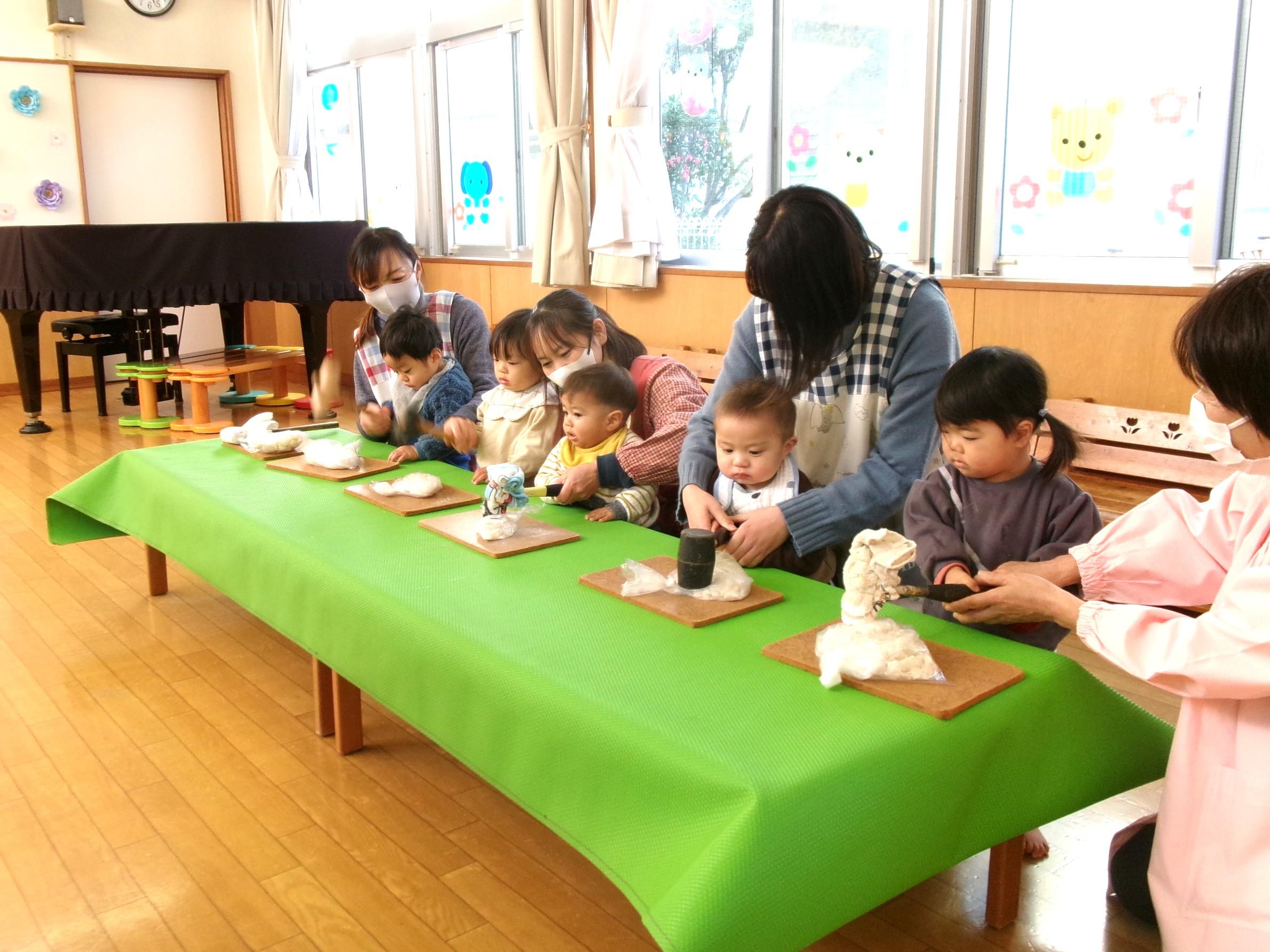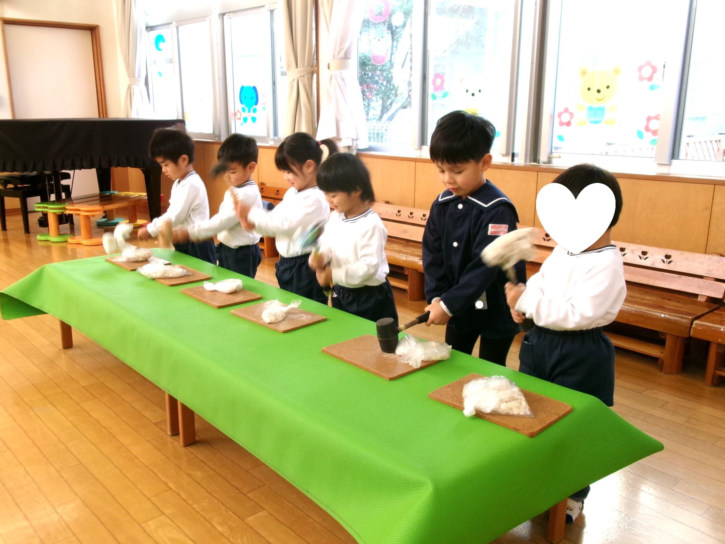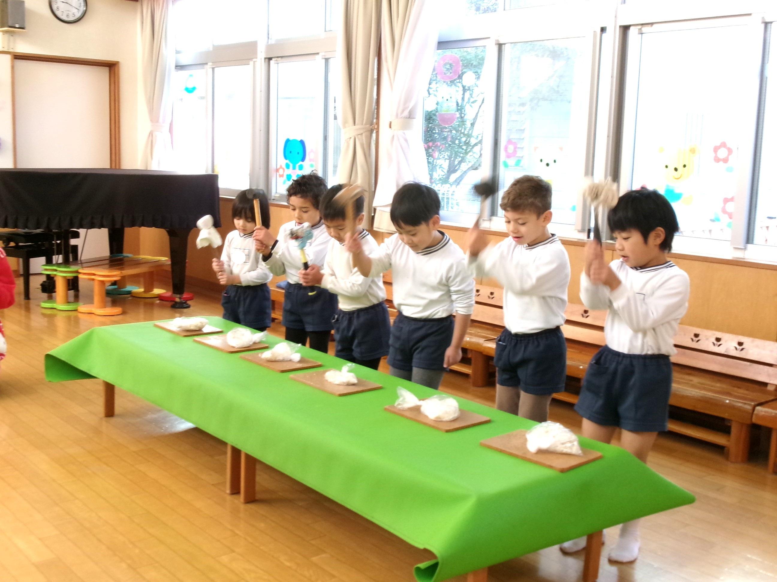 1月11日は鏡開き。エオスでは本日、子どもたちと鏡開きを行いました。12月のおもちつきの際に作った各クラスの鏡餅を持ち寄り、鏡開きの由来を聞いてから順番で全員が鏡餅を「よいしょ!よいしょ!よいしょ!」の掛け声と共に叩き、無事に鏡開きが出来ました👏今日のおやつは「お雑煮」。年神様の力を貰って、一年元気に過ごしましょう😊